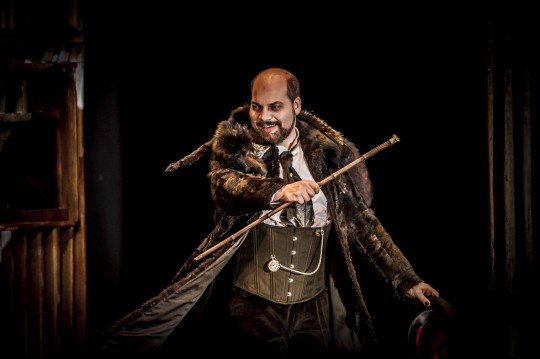 The design was daring and inspiring. Using just a back drop of corrugated iron it gave the area a down at heel, Victorian slum feel. But then the audience were treated to the lavish costume that gave it the Gothic Mary Shelley kind of ambience.